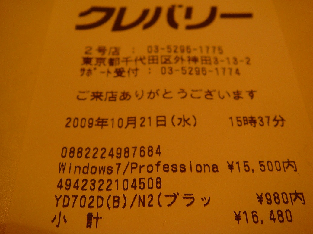さてさてさて 今日は待ちに待ったWindows7の発売日 先日ブログでも述べたように 今日の突撃先はクレバリーである。 14:50過ぎに家を出て アキバについたのは15:30過ぎであった