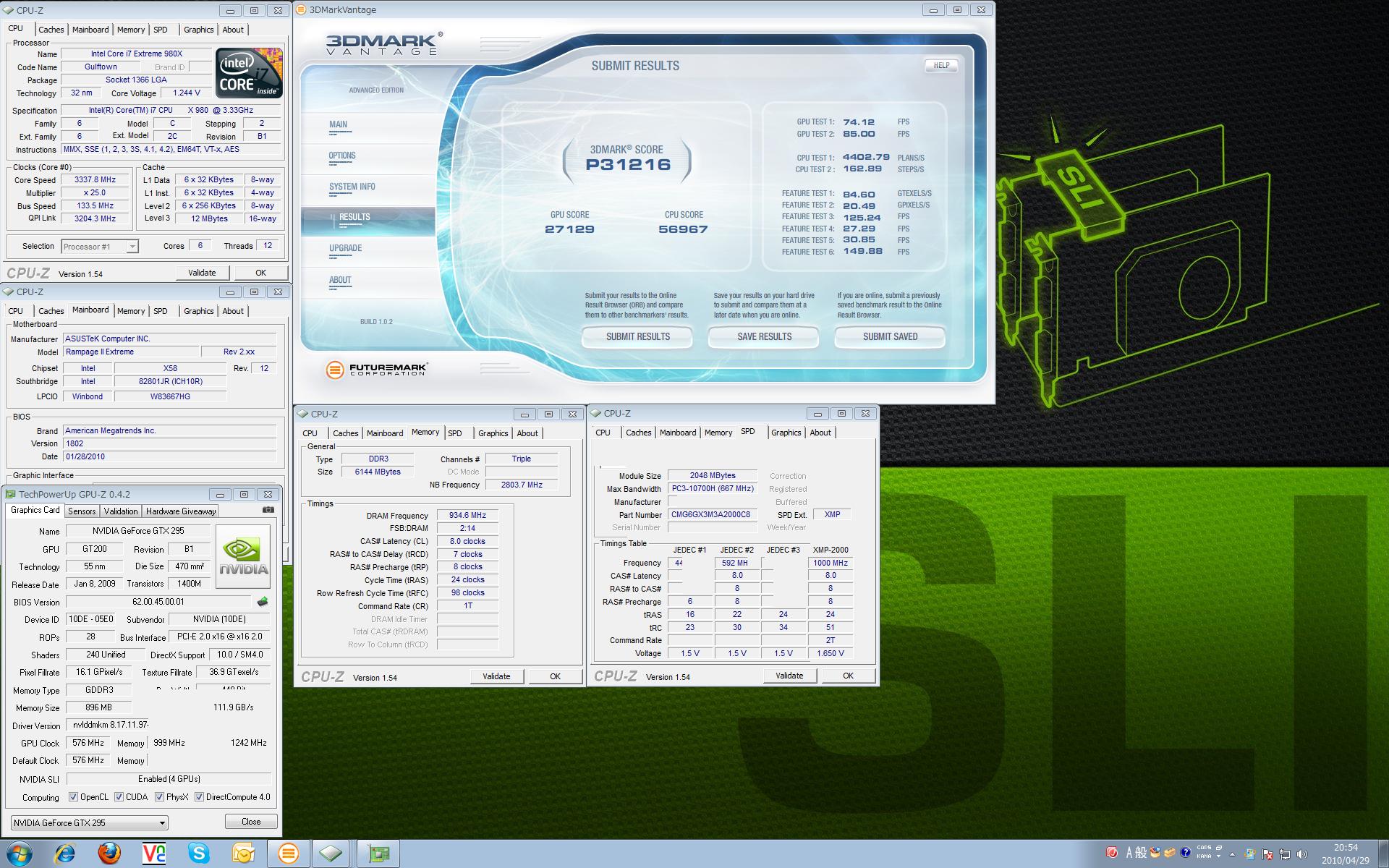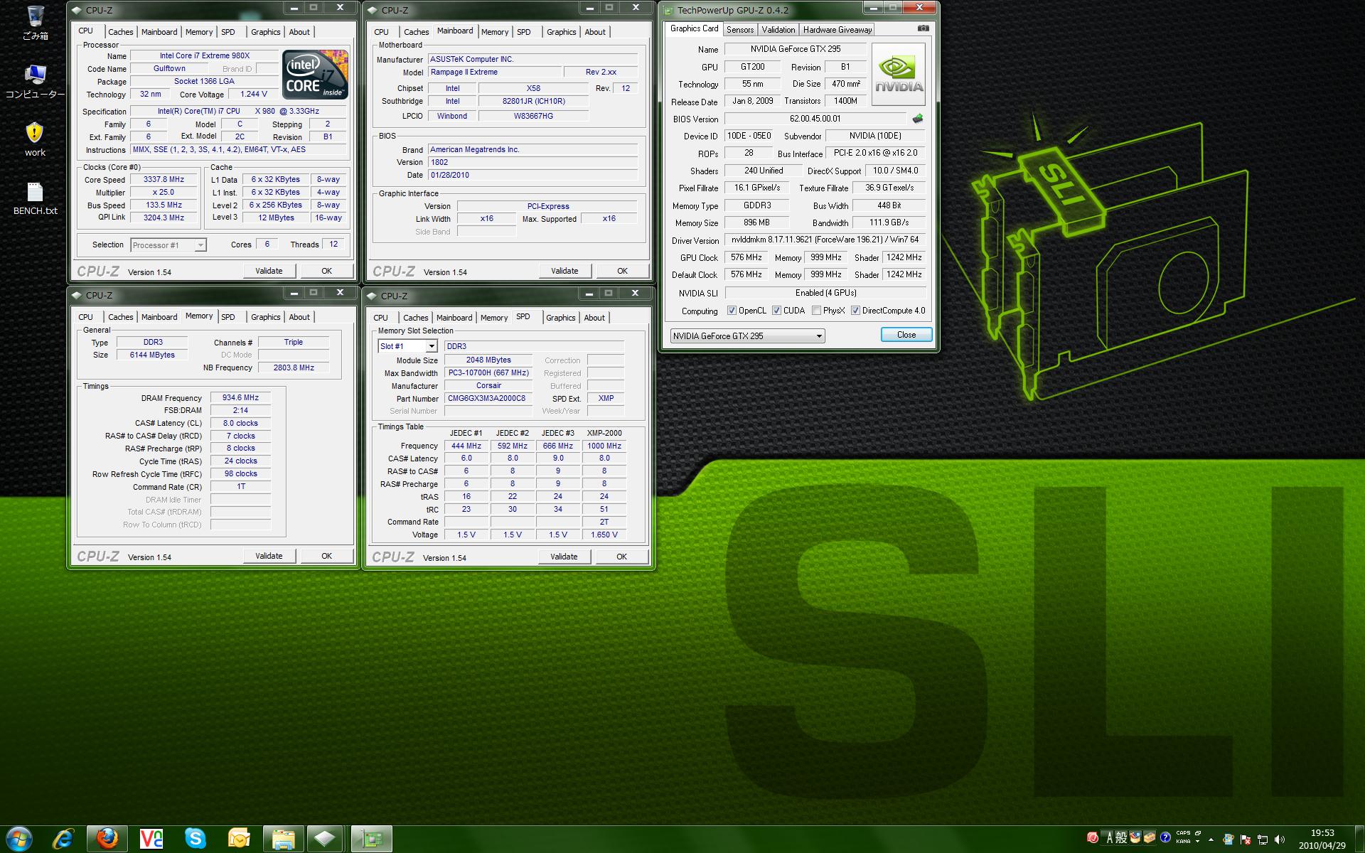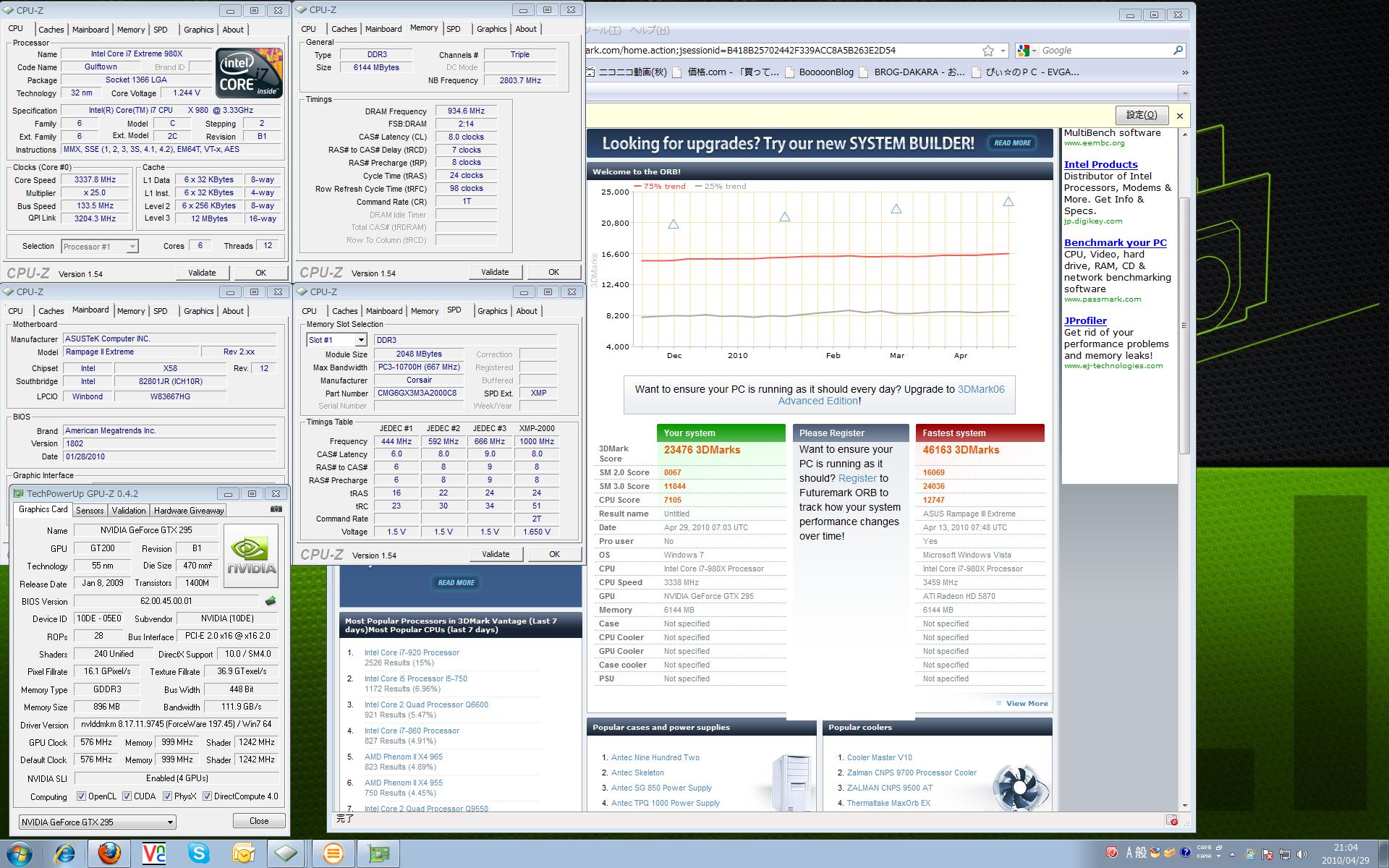 さて980Xを購入してもうすぐ一週間経ちます。 ここ一週間はブルースクリーンとの戦いでした(;´∀`) とりあえず傾向がつかめてきましたがまだまだです;; 今回はデフォルトクロックでまとめてみます。