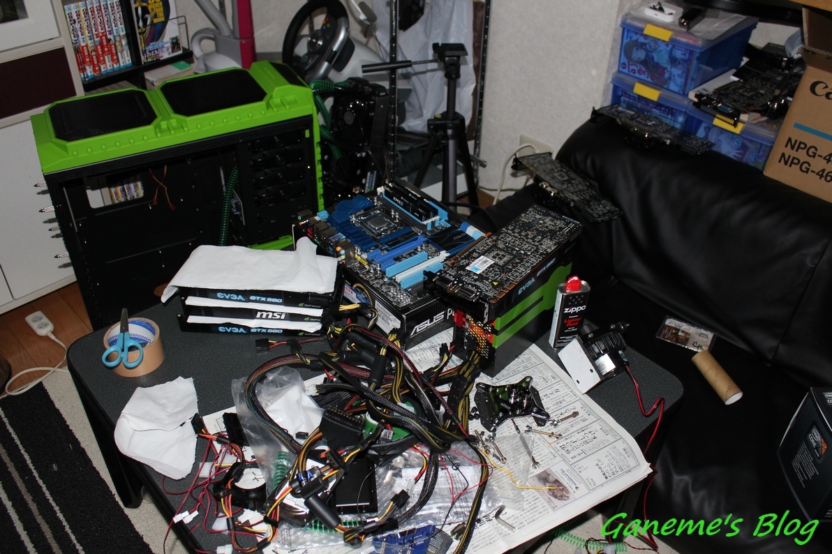 …とまぁそんなこんなで今日の朝一番の新幹線で東京に戻ってきました。 今日は一つだけ期末試験があったので、東京駅からそのまま大学に向かって テストを受けてきました。 その後、15時半から横浜研究所の所長とアキバで待ち合わせをしていたのですが 一向に来る気配がないので電話をしてみたら… 案の定召されていました笑(仮眠からの寝坊的な意味で) というわけで狛江研究所に直接集合ということにして 今日のミッションであったこちらを捕獲してまいりました。 通算5枚目ェ… 以前購入した4枚目のやつを諸事情(動作等は全然問題なし)により手放したかったので 買い取り手を探していたのですが、たくみ氏が水没事故を起こしてしまい 480Lightningを吹き飛ばしてしまったということで、彼が引き取ってくれることにw 水冷はランニングテストが重要よっ(*´ω`*) ついでに俺が売ってあげたR3Eも召された可能性大らしい… ご愁傷様としか言いようが…(ry 今日の狛江研究所の活動は 横浜研究所から持ち込まれた980Xの検証と、今日買ったSCの耐性チェックでございます。 まぁ何をしたのかは省きますが、色々とやっておりました。 もう部屋がヤベェ… 明日2600KとP8P67Delxeは旅立っていきます。