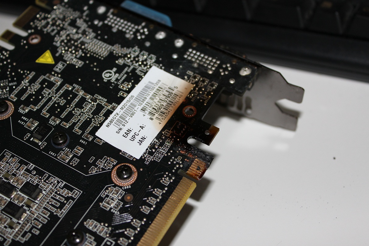 画面がブチッと消え、何事かと横を見ると発火していました。