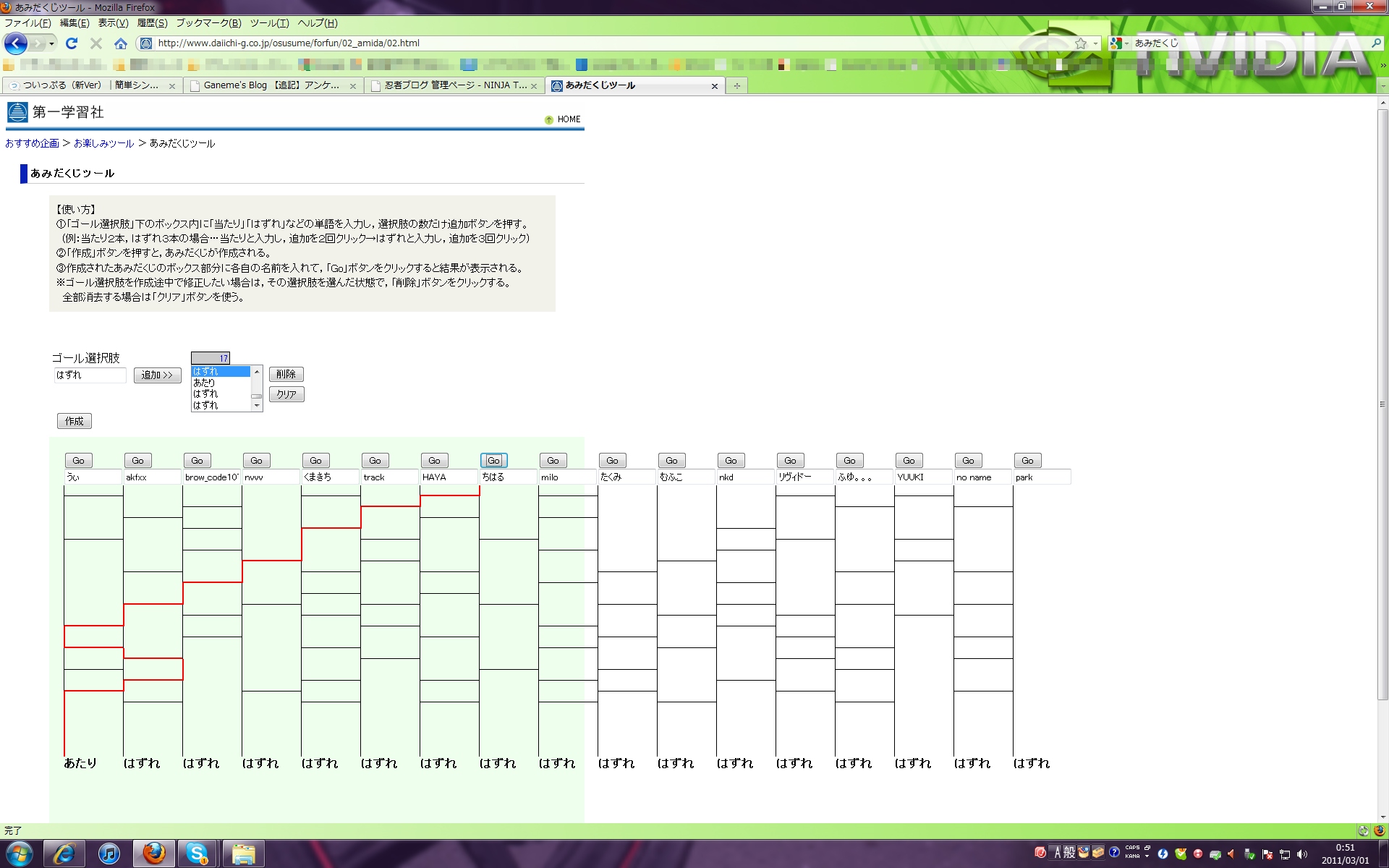 あみだくじの位置はコメントの書き込み順となっています。