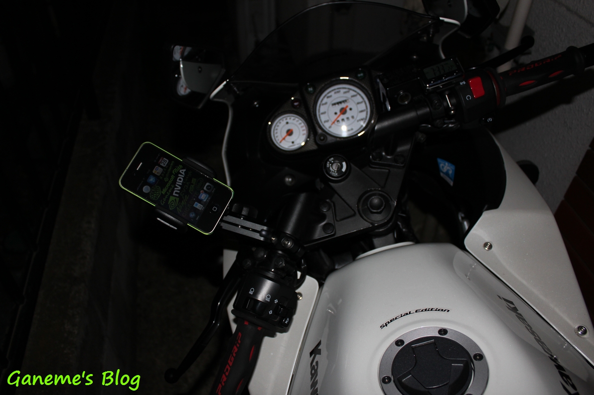 27日は昼過ぎで大学が終わったのでそのまま帰宅して14時くらいに爆睡 夕方には起きる予定でしたがなぜか起きたら23時wwww というわけで寝られるわけもなく ゲームをしながらバイクブログを読み漁っていたんですね。 そしてマウントシステムの存在を知ってしまいました… …思い立ったら止まれない性格な私。 今日の午前中からバイクパーツの某チェーン店に行ってきました。 そして購入してきたのがこちら。 携帯電話をハンドルにマウントするための器具です。 意外とかっちりしていて事故らない限り落ちそうにはありません。 信号待ちでTwitterのTLをチェックしたり 走行中の動画を撮ってみたり ナビ代わりに使ってみたり… 色々とできそうです(*´ω`*) 【メーカー】SYGN MOUSE 【品番】 ①パイプクランプベース:00060615 ②アーム:00060613 ③汎用型ホルダー:00069875