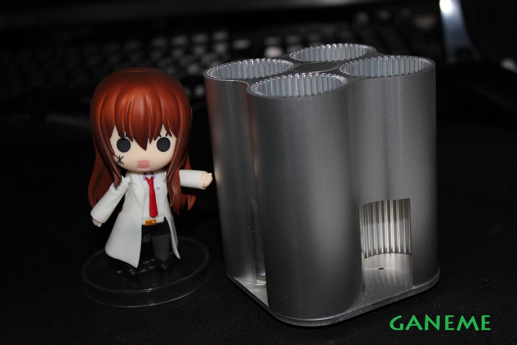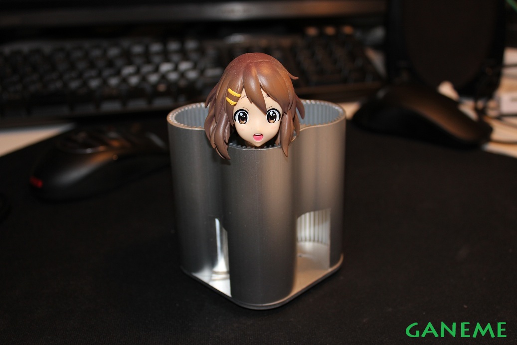 ペン立てこと"T-Shooter"とは不二ライトメタル株式会社という 聞いたこともない会社が開発、製造した伝説のCPUクーラーである。 熱力学と流体力学を融合させた新機構のCPUクーラーであり その性能は計り知れない。 しかし自分はあくまでも”ペン立て”として購入したのである。 こんなクソ冷えもしないクーラーをクーラーとして使う気はさらさらない。 発売当時定価が6000円程したみたいだが だれがこれに6000円出すだろうか。 これに6000円出すくらいなら2TBのHDD買うわw っていうくらい酷い。 実際に実物を見たのは今日が初めてだが 箱を開けた瞬間、ダメオーラが部屋中に充満した。 とりあえずペン立てにする前に一度軽く撮影会をしたのでその様子を載せよう。 ↑↑↑Tとクリスティーナのコラボ。 ↑↑↑平沢唯 on the T. はぁ…送料込1500円とはいえ、また無駄なモノをIYHしてしまった…