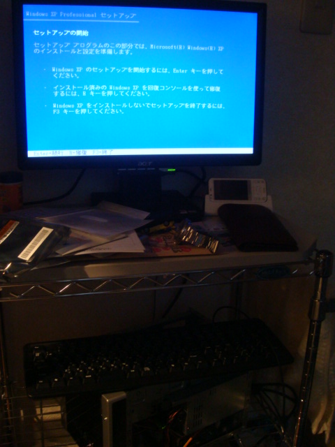 意外と小さいです^^ 中身は激狭:(;゙゚'ω゚'): というわけで只今OSのインストール中 現在はWindowsXPのインストールが終わり ドライバもいれたので WindowsUpdateをしています。 コレが終わったらLinuxのほうを入れて デュアルブートの設定をして サーバーの設定を終わらせたら PT1を移植する手術に入りますーー