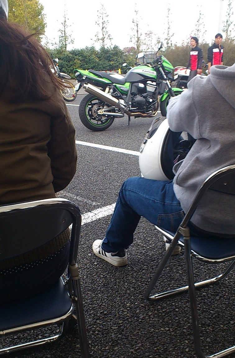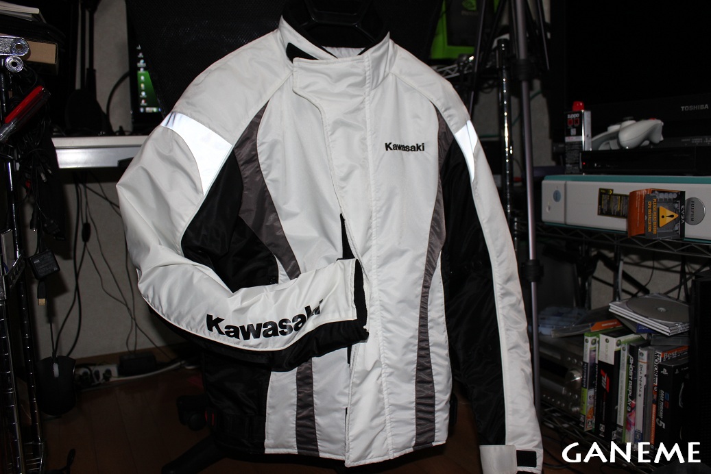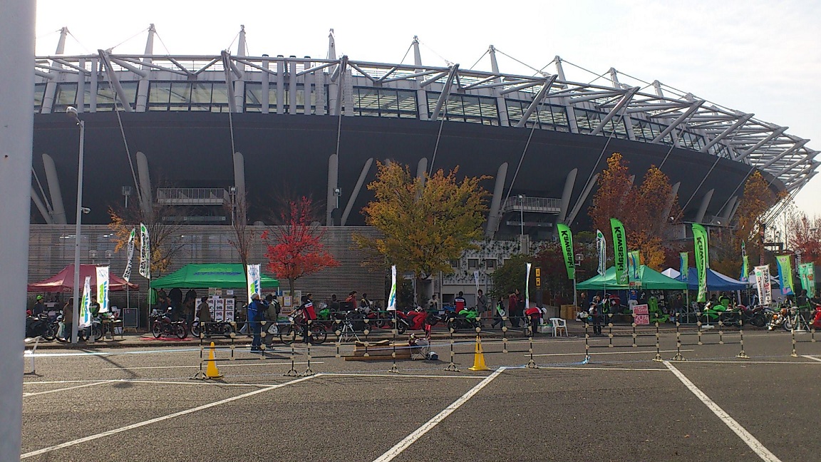 スーパースポーツの多いこと多いこと… 気合の入ったチューニングマシンも多かった。 耳が幸福になれた一日だった。 会場はこんな感じでバイクが置いてあって 自由に跨ってエンジンをかけることができた。 色々跨った結果 俺の次期マシンはKAWASAKI ZX-10Rか、TRIUMPH デイトナ675Rになりそう。 特にデイトナの3気筒エンジンは音が心地よすぎてやばい。 純正であの仕上がりなら特にいじるところはないんじゃないだろうか。 ちなみに今日は申し込み制だったが試乗もできたため Ninja400Rに試乗してきた。 結果から言うと 微妙… ハンドルポジションがNinja250Rよりも高い気がした。 その上セパハンじゃなくてバーハンだったのがもっとダメ。 あれは正直今タダで乗り換えられるといわれても乗り換えたくない… 決して負け惜しみとかそういうのではなくて、純粋に自分の好みではないと感じた。 また、会場では色々なグッズも販売されていて KAWASAKIのグッズを扱うショップでは全品20%オフの価格で販売されていた。 ナッ○スよりかなり安い!! というわけでこの機会に冬用のジャケットを購入してみた。 とても楽しい一日であったが、唯一… 一眼忘れていったのが悔やまれる