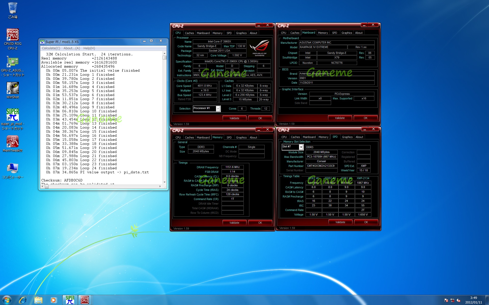 昨日買ってきたCMTの一枚目をチェックしてみた。 結局2600KだとBCLKが足りなくて回しきれなかったので 今日は3960Xで。 いつもOSが途中で壊れてpiが起動しなくなるから 作業が全然捗らない…