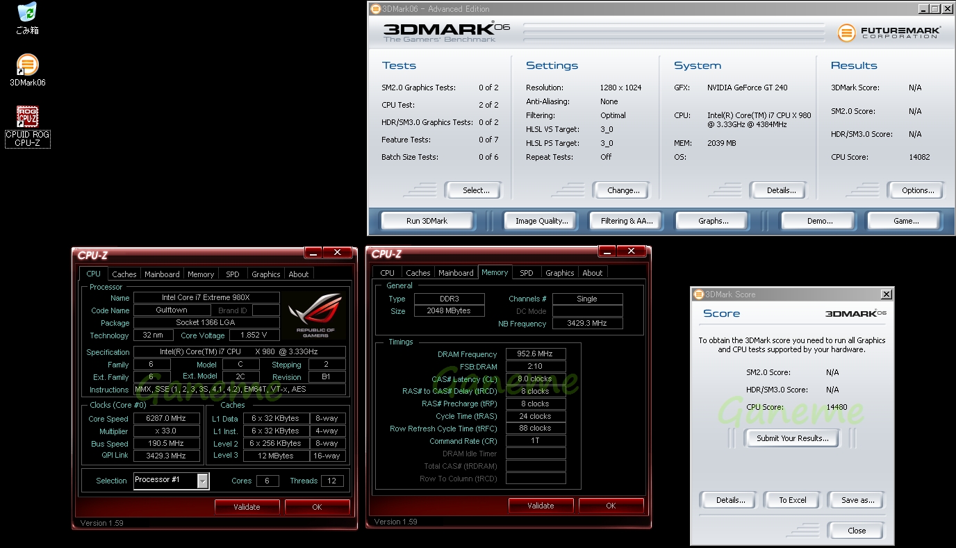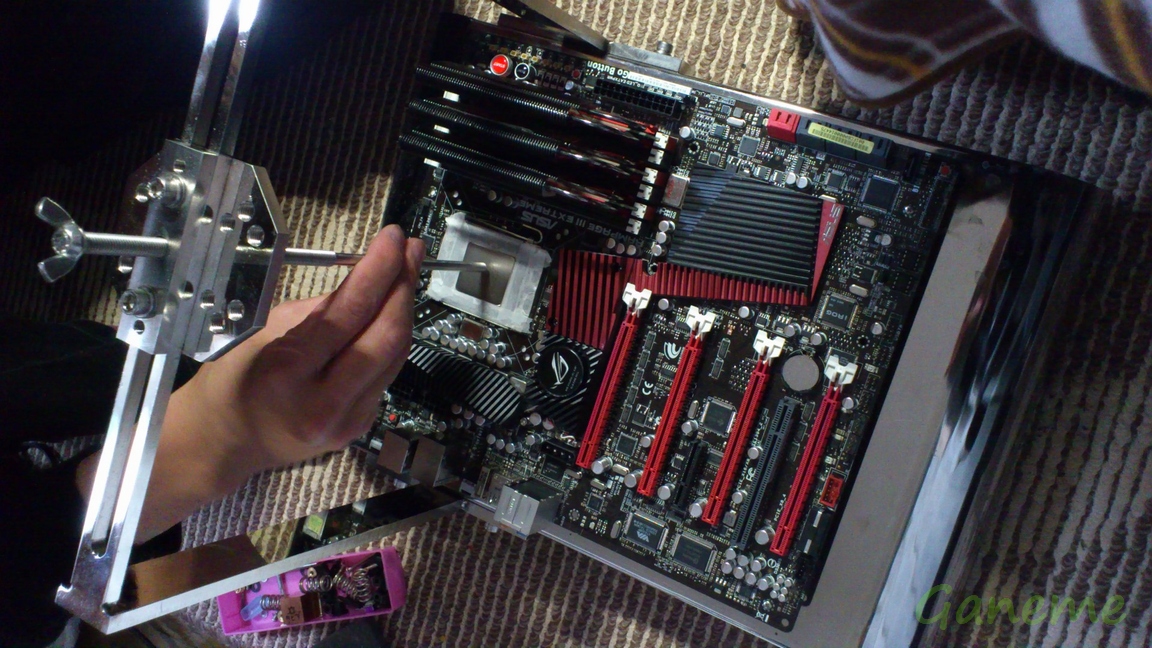 980X用のOSをインストールしている間に例のマックでポテパ。 ポテトの塩気で口の中の水分がほとんど奪われた。 で、帰宅してセッティング。 たくさんお御籤するより 1つの石に時間とお金と愛情と気合をかけたほうがいいよね!! っていうのが共通の見解 で、早速ぶっかけ。 今回の検証温度は CBBが-130℃ CBが最初は-150℃だったけど色々やっていくと-175℃くらいになった。 CBで引っかかっても-130℃まで温めれば 電源落とさなくても起きてくるっていう非常に楽なコでもあった。 満水OKな石では無かったが 発熱が非常に少ない石だったので燃費はかなり良好。 それにしてもF1 Darkは値段の割にかなりレスポンスが良さげだな。 所長も言ってたけど自分もそう思った。 つーか今回使った電源の電圧の出力がブレなさすぎてやべぇww 新しいエリート公認電源に認定されるのも間近かも。 で、今回得られたSSはこちら。 Core:6287Mhz 倍率:33倍 BCLK:190.5Mhz 大量のガルフを選別してきた男曰くかなり良さげだとのこと。 バリだけなら7Ghzいくかも。 まさか3万でこんなにいい石が手に入るとは… 今回のケツの拭き残しはこちら 撤収時に結構温めてから取ったから グリスが変形してしまった… もっと低い温度で外していたらきれいな拭き残しが見れたかも。 早く俺もきれいにケツを拭けるようにならねばいかんな。 今回久々にX58をぶっかけたわけだがやっぱりSandyやSandy-Eとは違うな。 ぶっちゃけSandy-Eぶっかけたところで(ry X58を一人でぶっかけられるようになって一人前だと思う。 俺もまだまだ気合が足りんなー