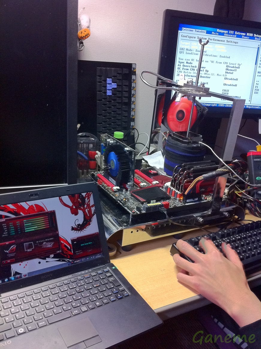 昨夜はこの前買った980Xの真の実力を測るべく 日吉研究所にお邪魔してきた。 相変わらず壮絶な一室である。