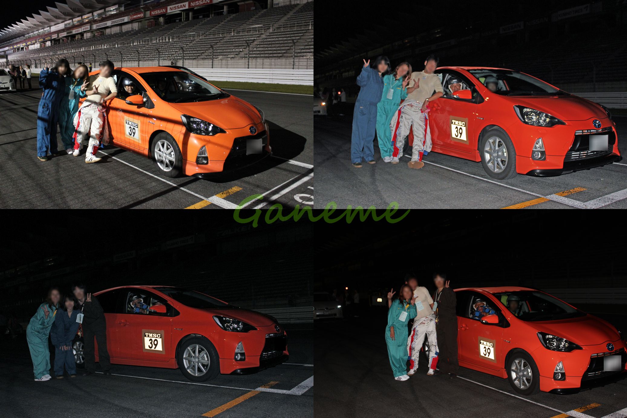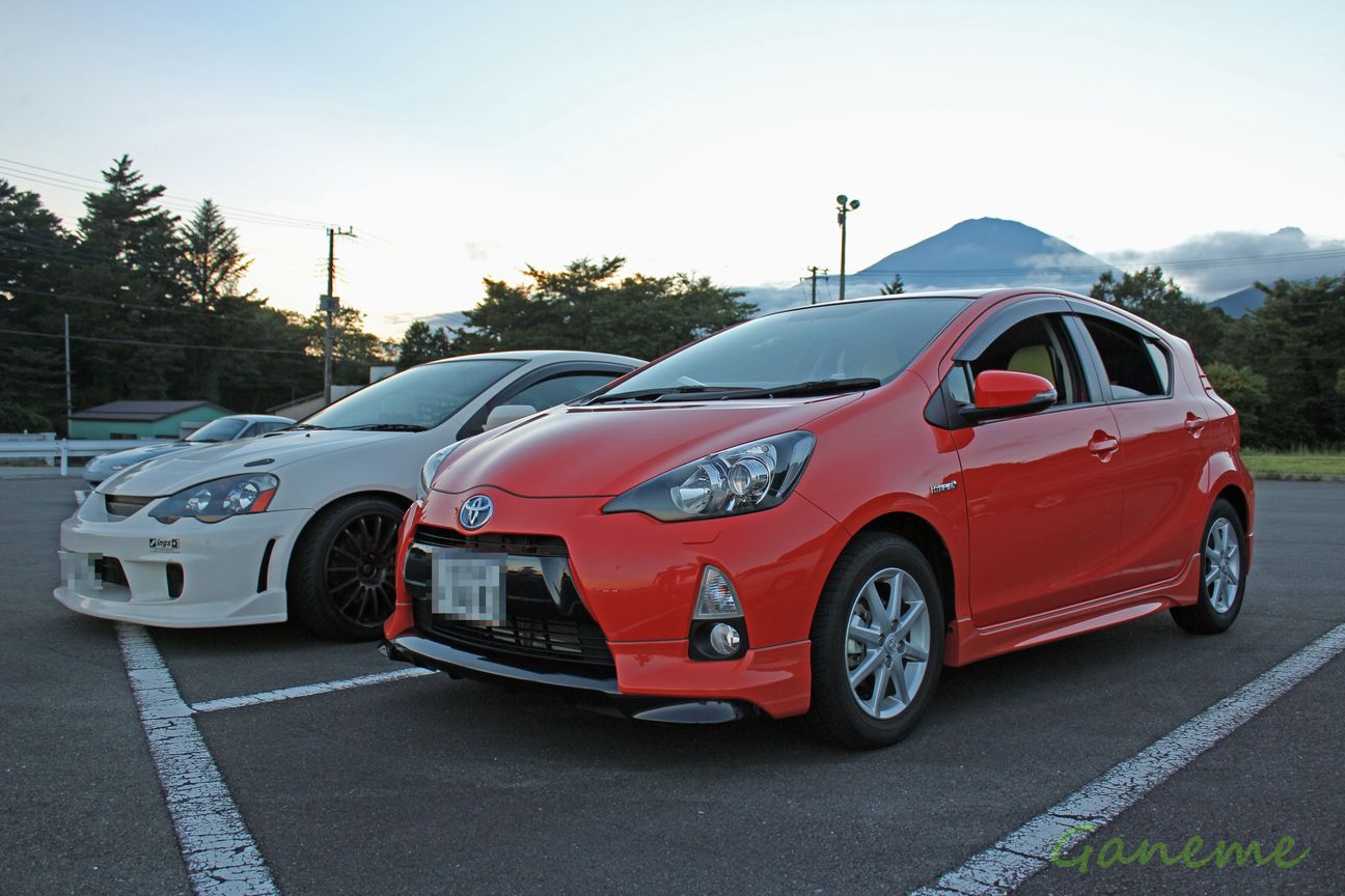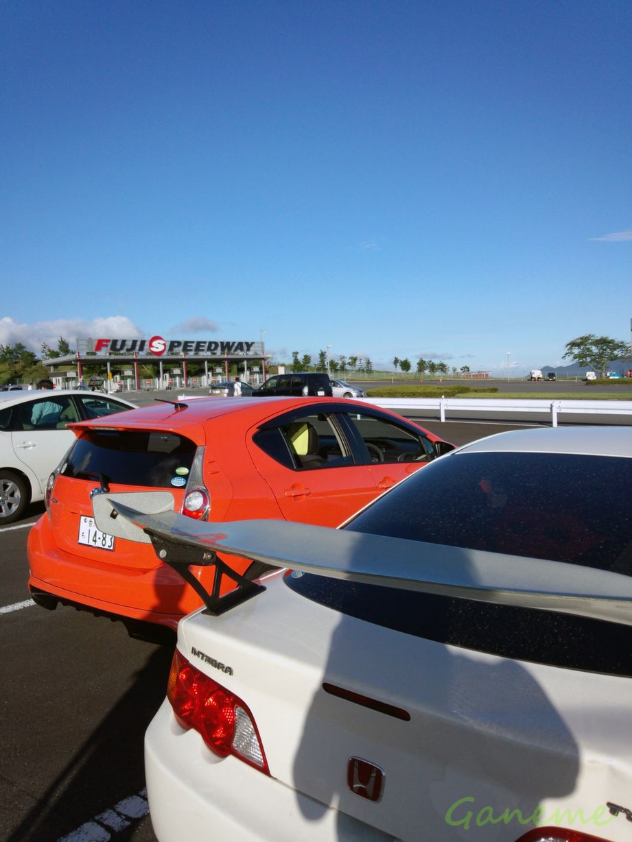 そのまま店に入るとK社長、Y社長、SAYAKA様がいた。 すでに料理が並んでいて 「まぁ食え。生ビールでいいか?」 ってことで少し不振に思いつつも一次会のワインで若干出来上がっていたので 一口パクリと行った瞬間… 食ったな?食ったな?ww ハメられた…だ…と… この瞬間、ドライバーとしての参戦が決まった。 2チーム出すためには8人ドライバーが必要らしいんだが どうしても足りなかったんだそうで。 しかも走行時には二人乗車が必須とのこと。 …とまぁそんなこんなで9月15日 昼前にアキバでK社長の息子とお姫様を拾って 12時過ぎに東京を経った。 この日は3連休初日って言うこともあって 東名高速は大渋滞だった… いつもなら御殿場まで2時間もあれば楽勝で着くのに この日は4時間半もかかりやがりましたよ、えぇ。 富士スピードウェイの西ゲート集合だったので そこに向かうとK社長と今回出る車のオーナーのたまちゃんがいた。 香川からお疲れっすwww なかなか開場しないので しばらくここでトークしたり、AQUA運転して遊んだり ぶつけられたインテの今後の方針を話したりしてた。 そのあとY社長がR8に乗って登場したり Y社長の会社の社員さん達がきたり N社長がTバックはいて登場したり なんかもうカオスなことになってたなw レースは22時半スタートだったので それまでにPITで作戦会議したり、着替えたり、車検やら手続きしてた。 Y's Companyのお揃いのレーシングスーツやばすぎるwww で、手続きが終わった後、俺とお姫様、K息子の3人で買出しに行ってきた。 Y社長から2万円渡されてコンビニで買い物したったw インテが食料供給車と化してた。 レース開始直前には富士のホームストレートにて撮影会が始まった。 今回は2チームで、AQUAとPriusでエントリーしたんだけど Priusチームは撮り忘れた。 あとは自分とインテもせっかく富士に来たんだしってことで撮ってもらった。 で、レースが始まって 自分はPriusで走った。 ちなみに富士スピードウェイを実車で走るのは今回が初である。笑 でもウチのチーム みんなレースの趣旨が「燃費」だっていうことを失念していたので タイム的には2台ともTOP5に入ってたんだけど 最終的に燃費も考慮した順位だとドベに近かったwwwwwwwwwwwww まぁみんなエクストリームな人ばっかりだから仕方ない。 レース自体は22時半スタートで終了は朝5時くらいだった。 朝は富士山めっちゃ綺麗だった! このあとみんなで片付けて 西ゲートで解散式的なことやって解散となった。 N社長!!マフラーとリアハッチ持ってるなら言ってくれよwww 富士の麓で早朝6時に R8、DC5、AQUA、ボルボV70、CX-7っていう異色のメンバーでの ドラッグレースが行われたとか行われていないとか…笑 すげー楽しい一夜だった。 年明け1月にはガチの耐久レースあるから それまでに練習しよーっと。 運営側が撮影した写真はこちら