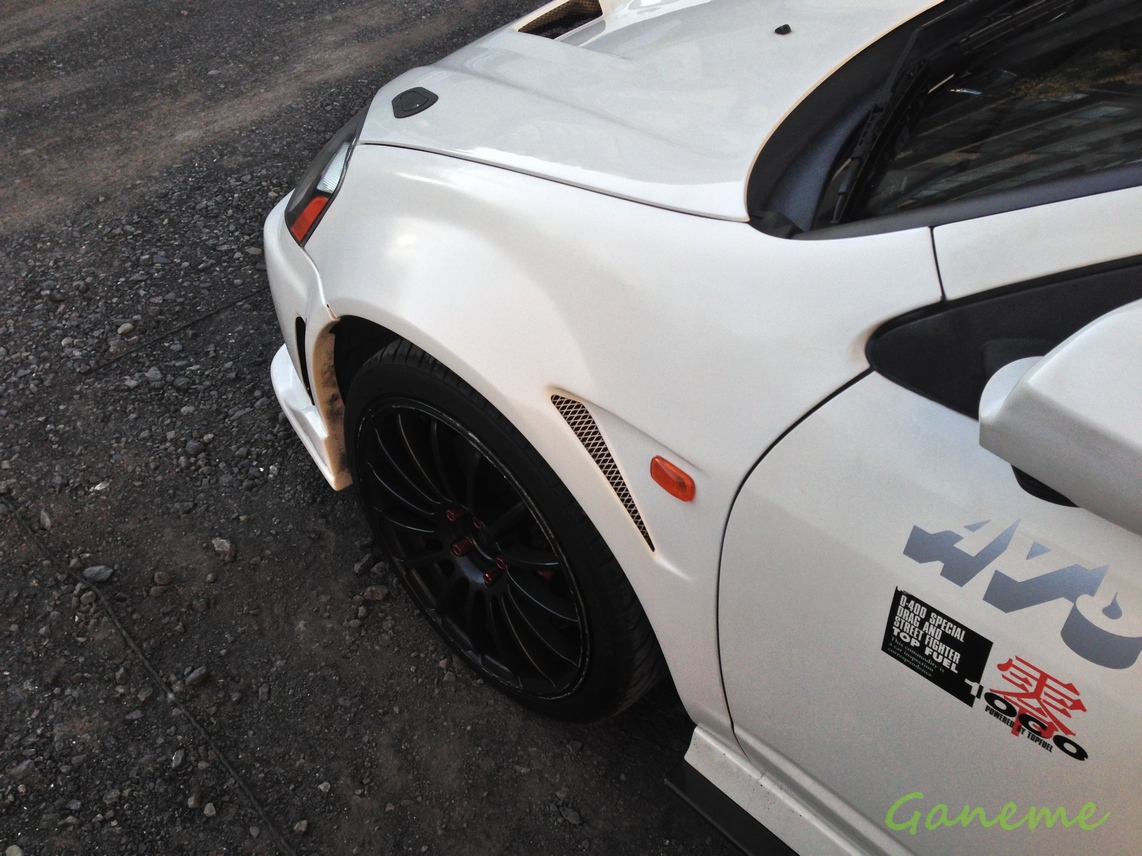 この3連休で以前ヤフオクで買った J's Racingのワイドフェンダーを取り付けした。 最近知り合った同い年のDC5乗りの友達の家で 男三人、日が暮れてからiPhoneの明かりを頼りにやってた。 いや、彼がやってくれたと言ったほうが正しいのかw